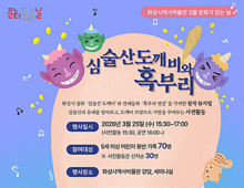이런뉴스(e-runnews) 김삼성 기자 | 화성시 역사박물관이 오는 3월 25일 문화가 있는 날을 맞아 지역의 고유한 설화와 예술이 어우러진 특별한 시간을 준비했다. 이번에 선보이는 창작 뮤지컬 심술산 도깨비와 혹부리는 화성시 해창리에 전해 내려오는 심술산 도깨비 이야기와 대중에게 친숙한 전래동화 혹부리 영감을 재치 있게 각색한 작품이다. 문화가 있는 날은 시민들이 일상 속에서 문화 예술을 가깝게 누릴 수 있도록 매달 마지막 주 수요일을 전후해 운영되는 날로, 화성시 역사박물관은 이번 행사를 통해 지역사의 가치를 재발견하고 가족 간의 소통을 돕는 풍성한 프로그램을 선보인다. 본 공연에 앞서 오후 3시 30분부터는 박물관을 찾은 어린이들을 위한 사전 체험 프로그램이 열린다. 심술산의 유래를 흥미롭게 배우고, 융건릉 석물에 새겨진 전통 도깨비 문양을 모티프로 나만의 가방을 직접 만들어보는 시간이다. 체험 프로그램은 선착순 30명을 대상으로 진행되며, 이어지는 본 공연은 오후 4시부터 70명의 관객과 함께 호흡을 맞출 예정이다. 이번 행사는 5세 이상 어린이를 동반한 가족이라면 누구나 무료로 즐길 수 있다. 참여 신청은 화성특례시 통합예약시스템을 통해 오는 3월