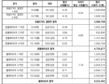 이런뉴스(e-runnews) 김삼성 기자 | 2025 신한 SOL뱅크 KBO포스트시즌이 야구 팬들의 높은 관심 속에 막을 내렸다. 역대 최초 정규시즌 1,200만 관중을 달성한 KBO 리그는, 포스트시즌 기간 펼쳐진 16경기에서도 33만 5,080명이 야구장을 찾아 전 경기 매진을 기록했다. 시청 지표 역시 지난해 대비 상승세를 보이며 정규시즌의 열기가 포스트시즌까지 이어졌다. 올해 포스트시즌 TV 평균 시청률은 6.89%를 기록하며 6.12%를 기록했던 2024 포스트시즌 대비 약 12.5% 상승했다. 포스트시즌은 와일드카드 결정전부터 한국시리즈까지의 16경기가 모두 지상파에서 생중계됐으며, 접전이 펼쳐지는 경기에 화제성이 더해지며 시청 열기가 확대된 것으로 분석된다. 플레이오프 5차전(삼성-한화)은 시청률 10.26%로 254만 5,807명이 시청해 포스트시즌 기간 중 가장 높은 시청률과 시청자 수를 기록했으며, 한국시리즈 4차전(LG-한화)은 244만 7,295명이 시청하며 시청률10.04%를 기록해 뒤를 이었다. 시리즈 평균 시청률은 와일드카드 4.24%, 준플레이오프 4.89%를 시작으로, 플레이오프