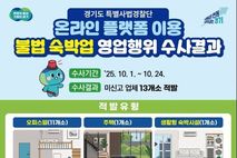 이런뉴스(e-runnews) 김삼성 기자 | 숙박업 신고 없이 오피스텔, 주택 등에서 영업을 한 불법 숙박업체 13곳이 경기도 특별사법경찰단 수사에 적발됐다. 경기도 특별사법경찰단은 10월 1일부터 24일까지 고양, 부천, 성남, 화성, 안양, 김포, 용인, 파주 등 8개 지역에서 불법영업으로 의심되는 숙박업소에 대한 단속을 벌여 미신고 영업 13곳 25개 객실을 적발했다고 11일 밝혔다. 유형별로는 ▲오피스텔 11개소 ▲주택 1개소 ▲생활형 숙박시설 1개소이다. 특사경은 숙박 당일 주소를 통보하는 등 정확한 위치가 노출되지 않는 공유 온라인 플랫폼의 특징을 악용해 오피스텔, 주택 등을 임차한 후 숙박시설로 운영한 업소를 집중적으로 단속했다. 주요 사례를 보면 A업소는 부천시 오피스텔 3개 객실을 이용 숙박업을 운영하며 3년 9개월 동안 약 2억 원의 불법 매출을 올리다가 적발됐다. 안양시 B업소는 오피스텔 3개 객실을 1년 9개월 동안 운영하며 약 1억2천만 원을 벌어들였다. 파주시 C업소는 생활형숙박시설 2개 객실을 2년간 운영하며 약 7,200만 원의 수익을 내다 덜미