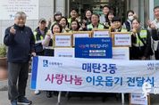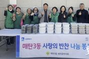 이런뉴스(e-runnews) 김삼성 기자 | 영통구 매탄3동은 지난 19일 매탄3동 새마을부녀회가 ‘사랑의 반찬 나눔’ 행사를 진행했다고 밝혔다. 이른 아침부터 매탄3동 행정복지센터로 모인 새마을부녀회원들은 불고기, 나물반찬, 열무김치 등을 정성스럽게 조리해 관내 어려운 이웃 25가구에 전달했다. ‘사랑의 반찬 나눔’은 어려운 이웃들에게 반찬을 나누는 새마을부녀회의 대표 봉사활동이다. 매탄3동 새마을부녀회는 연 4회 정기적으로 반찬을 나눔으로써 이웃 간의 소통에 앞장서 아름다운 지역사회를 만드는 데 기여하고 있다. 김정이 매탄3동 새마을부녀회 회장은 “어려운 이웃에게 작은 도움이라도 되기를 바라는 마음으로 매년 사랑의 반찬 나누기를 하고 있다”며 “이 반찬을 통해 이웃들이 행복했을 느끼셨으면 좋겠다”고 말했다. 김병목 매탄3동장은 “반찬 나눔에 참여해주신 새마을부녀회 회원님들께 감사드리며 따뜻한 매탄3동 지역 사회를 만들기 위해 노력하겠다”고 답했다.