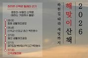 이런뉴스(e-runnews) 김삼성 기자 | 의정부시는 2026년 1월 1일 병오년 새해를 맞아 지역 주민들이 함께 걸으며 희망찬 2026년을 시작할 수 있도록 ‘해맞이 산책, 하천길 따라 새빛정원까지’ 행사를 개최한다. 이번 행사는 ▲호원 생활체조광장에서 출발해 ▲신의교~신곡교 중간지점 벽천분수 ▲동오역 생활체조광장 ▲경기도청 북부청사역 인근 벽천분수를 거쳐 ▲신곡새빛정원까지 이어지는 릴레이 산책 코스로 진행된다. 참가자들은 새해 첫날 아침 각 지점을 차례로 걸어 최종 도착지인 신곡새빛정원에서 함께 해돋이를 감상할 예정이다. 새해를 축하하는 역동적인 북 공연과 신년 운세 뽑기 등의 시간을 가지며 의미있는 2026년을 시작할 예정이다. 특히 2026년을 여는 첫 행사인 만큼, 시민이 주인공이 되는 축제를 만들기 위해 새해를 맞아 소중한 사람이나 자신에게 보내는 편지를 사전 접수해 신곡새빛정원에서 함께 공유할 예정이다. 김동근 시장은 “새해 첫날 이웃과 함께 걸으며 소통하고, 희망찬 2026년을 시작하는 뜻깊은 자리가 될 것”이라며 “행사를 준비 중인 통장협의회에 감사드리며, 의정부 시민들의 많은 관