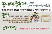 이런뉴스(e-runnews) 김삼성 기자 | 동두천시 송내동 주민자치위원회는 오는 11월 2일 오후 2시부터 지행역 1번 출구 메타세콰이아길에서 ‘2025 송내마을축제’를 개최한다고 밝혔다. 이번 축제는 주민자치센터 프로그램 수강생을 비롯해 지역 학교, 동아리, 학원 등 다양한 주민이 참여해 주민자치 활성화와 지역 문화·예술 교류의 장을 마련하고자 기획됐다. 행사 당일에는 송내동 주민 노래자랑, 주민자치 프로그램 발표회·전시회, 초청공연, 체험부스, 벼룩시장, 먹거리 마당 등 다채로운 프로그램이 진행된다. 특히 주민이 직접 참여하는 노래자랑과 맷돌체조, 트롯고고장구, 실버태권도 등 7개 팀의 프로그램 발표회가 마련돼, 지역 주민들이 그동안 갈고닦은 실력을 선보일 예정이다. 또한 도자기 만들기, 팽이 꾸미기, 만년도장 만들기 등 가족 단위로 즐길 수 있는 체험부스도 함께 운영된다. 이번 축제는 송내동 주민의 화합과 자긍심을 높이는 것은 물론, 주민자치센터 프로그램 홍보와 신규 수강생 유치에도 도움이 될 것으로 기대된다. 아울러 지역 소상공인과 시민이 함께 참여하는 벼룩시장도 열려 지역경제 활성화에도 기여할 전망이