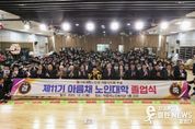 이런뉴스(e-runnews) 김삼성 기자 | 의왕시는 (사)대한노인회 의왕시지회 부설 아름채노인대학과 사랑채노인대학이 12월 2일과 4일, 아름채노인복지관과 사랑채노인복지관에서 2025학년도 졸업식을 성황리에 개최했다고 밝혔다. 박제천 의왕시 노인지회 수석부회장의 노인강령 낭독으로 시작된 이날 졸업식은 졸업장 및 표창장 수여, 노인대학장 회고사, 학생회장 사은사 및 내빈 축사 순으로 진행됐다. 제11기 아름채노인대학과 제21기 사랑채노인대학은 지난 3월 개강하여 주 1회 교양, 건강관리, 문화강좌, 현장체험 등 다양한 프로그램을 운영하며 어르신들의 건전한 여가선용과 배움의 터전이 되어왔다. 올해에는 총 322명(아름채 164명, 사랑채 158명)의 졸업생이 모든 과정을 마치고 자랑스러운 학사모를 쓰게 됐다. 이종훈 지회장은 격려사에서 “평생교육을 몸소 실천하며 배움의 끈을 놓지 않으시는 어르신 여러분께 박수를 보낸다”며 “배움은 끝이 없으니 100세까지 건강하게 공부하며 지내시길 바란다”고 전했다. 김성제 시장은“건강하게 졸업식에 참여하신 어르신들과 수상자 모두에게 축하의 말씀을 전한다