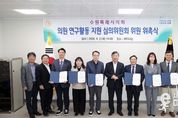 이런뉴스(e-runnews) 김삼성 기자 | 수원특례시의회는 지난 2일 의회 세미나실에서 수원시의회 의원 연구활동 지원 심의위원회 위원 위촉식을 개최했다. 이번 위촉식은 최근 개정된 ‘수원시의회 의원 연구활동 지원 조례’에 따라, 연구 활동의 객관성과 전문성을 한층 높이기 위해 추진됐다. 의회운영위원회의 추천을 받은 행정, 경영, 교육, 도시, 외교 5개 분야의 전문가 6명이 신규 위원으로 선임됐다. 이날 행사에는 김정렬 부의장(더불어민주당, 평·금곡·호매실) 비롯해 더불어민주당 교섭단체 대표 김동은 의원(더불어민주당, 정자1·2·3), 국민의힘 교섭단체 대표 박현수 의원(국민의힘, 평·금곡·호매실)이 참석해 위촉장을 수여하고, 연구활동의 내실 있는 운영을 위한 적극적인 역할을 당부했다. 새롭게 위촉된 위원들은 향후 2년간 활동하며 ▲의원연구단체 연구계획 승인 ▲연구활동비 적정성 심의 ▲연구용역 결과보고서 평가 등을 수행하게 된다. 김정렬 부의장은 “수원특례시의회 의원 연구활동은 시의원과 전문가가 함께 시민 삶의 질 향상을 위한 정책 역량을 높이고 공부하는 의회 조성을 위한 중요한 활동”이라며, “