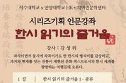 이런뉴스(e-runnews) 김삼성 기자 | 안양시 석수도서관은 안양대학교 HK+사업단 지역인문학센터와 함께 시리즈기획 인문강좌의 일환인‘한시 읽기의 즐거움’ 강좌를 오는 11월 7일부터 12월 5일까지 운영한다고 17일 밝혔다. 이번 강좌를 통해 수강생들은 작사(作詞)와 작곡(作曲)의 특징을 동시에 지닌 한시(漢詩)의 형식미를 감상하고, 과거와 현재를 잇는 전통이 체현된 문화 텍스트로서의 한시 세계를 탐방한다. 석수도서관 관계자는 “석수도서관과 안양대학교 지역인문학센터가 협업하여 진행하는 이번 시리즈기획 인문강좌를 통해 시민들이 한시의 매력적인 세계를 깊이 탐구하고, 한시를 읽는 즐거움을 알 수 있길 바란다”고 밝혔다. 서울대학교 중국어문화연구소 책임연구원이자 한시 칼럼니스트 강성위가 진행하는 이번 강의는 10월 21일 10시부터 안양시도서관 홈페이지에서 접수하면 된다.