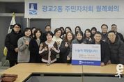 이런뉴스(e-runnews) 김삼성 기자 | 수원시 영통구 광교2동은 지난 5일, 광교2동 주민자치회가 이웃돕기 성금 100만원을 광교2동 행정복지센터에 전달했다고 밝혔다. 광교2동 주민자치회는 평소 이웃돕기 활동을 비롯해 지역사회 나눔 문화 확산과 주민 복지 증진을 위한 다양한 활동을 지속적으로 추진해 오고 있으며 이번 성금은 설 명절을 맞아 어려운 이웃이 소외되지 않도록 주민자치회 회원들의 자발적인 참여로 마련됐다. 김병직 광교2동 주민자치회장은 “설 명절을 맞아 주변의 어려운 이웃을 위해 뜻을 모아준 주민자치회원들께 감사드린다”며 “앞으로도 지역사회의 어려운 이웃을 위한 나눔 활동을 꾸준히 이어가겠다”고 밝혔다. 이날 전달된 성금은 광교2동 행정복지센터를 통해 관내 취약계층 및 위기가구 지원에 사용될 예정이다.