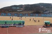 이런뉴스(e-runnews) 김삼성 기자 | 충북 진천HR FC가 홈 개막전에서 압도적인 경기력을 선보이며 승리를 거두는 동시에 K4리그 역대 최다 관중 기록까지 세우며 진천군을 축제 분위기로 물들였다. 진천군과 HR그룹은 지난 1월 12일 진천HR FC 창단을 공식 선언하고 2026 K4리그 시즌에 본격적으로 참가했다. 창단 이후 치러진 경기에서 뛰어난 경기력을 선보이며 신생팀답지 않은 강한 인상을 남기고 있다. 지난 14일 열린 홈 개막전에서 진천HR FC는 신생 강호로 평가받는 금산 인삼FC를 상대로 2대 0 승리를 거뒀다. 경기는 초반부터 양 팀이 팽팽하게 맞서는 양상으로 진행됐다. 이후 후반전에 들어서며 진천HR FC가 점유율을 높였고, 홍수호 선수가 상대 공을 가로채 오른쪽 골포스트로 침착하게 마무리하며 선제골을 터뜨렸다. 이어 후반 추가시간 주장 송홍민이 공중으로 떠오른 공을 오른발 발리슛으로 연결해 쐐기골을 성공시키며 2대0 승리를 확정했다. 앞서 열린 경기에서도 지난해 리그 5위를 기록한 강팀 부산 기장 FC를 4대0으로 꺾는 등 두 경기 연속
