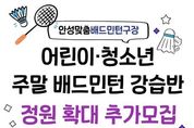이런뉴스(e-runnews) 김삼성 기자 | 안성시시설관리공단은 안성 시민 생활체육 활성화를 위해 현재 운영 중인 주말 어린이・청소년 배드민턴 강습반 정원을 확대하고 추가 수강생을 모집한다고 밝혔다. 이번 주말 어린이・청소년 배드민턴 강습반은 개설 이후 학부모와 수강생들의 높은 관심 속에 연일 정원이 마감될 정도로 큰 호응을 얻고 있다. 특히 주말을 활용해 어린이와 청소년들이 체계적으로 생활 체육을 접할 수 있다는 점에서 학부모들의 만족도가 높은 프로그램으로 자리 잡고 있다. 공단은 이러한 시민 수요를 적극 반영하기 위해 강습반 정원을 기존보다 확대하고, 오는 3월 23일 오전 9시부터 3월 31일 오후 10시까지 초등학생부터 고등학생까지의 어린이·청소년을 대상으로 선착순 10명을 추가 모집한다. 신청은 실내체육관 사무실에 전화로 문의한 뒤 방문 접수로 진행될 예정이다. 이정찬 이사장은 “시민들의 높은 관심에 부응하기 위해 앞으로도 누구나 쉽게 참여할 수 있는 생활체육 환경을 만들어 가겠다”고 전했다. 현재 안성시시설관리공단에서는 시민들의 건강증진을 위하여 주말 강습반 외 매주 2회(화,목) 오전‧