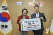 이런뉴스(e-runnews) 김삼성 기자 | 과천시는 19일 NH농협은행 과천시지부로부터 제휴카드 사용으로 적립된 기금 6천 9백여만 원을 전달받았다고 밝혔다. 이날 전달식은 과천시청 집무실에서 열렸으며, 신계용 과천시장과 이장순 NH농협은행 과천시지부장, 노준형 NH농협은행 과천시청 출장소장 등이 참석했다. 과천시는 NH농협은행과 협약을 맺고 법인카드, 보조금카드, 공무원 복지카드 등의 사용액 중 일정 비율(0.1~1.1%)을 포인트로 적립해 매년 기금으로 전달받고 있다. 이번 기금을 포함해 현재까지 과천시에 전달된 누적 기금은 약 8억 3천만 원에 이른다. 해당 재원은 시 세입으로 편성되어 공공서비스 확대와 복지사업 등 시민 삶의 질 향상과 지역 발전을 위한 사업에 활용되고 있다. 시 관계자는 “지역사회 발전을 위해 매년 기금을 전달해 준 NH농협은행 과천시지부에 감사드린다”라며 적립된 기금은 “시민이 체감할 수 있는 정책과 지속가능한 도시 발전을 위한 다양한 시정 사업에 소중히 활용하겠다”라고 말했다.