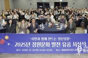 이런뉴스(e-runnews) 김삼성 기자 | 시흥시는 지난 12월 16일 시흥ABC행복학습타운 지혜관에서 올 한 해 지식과 경험을 나눈 ‘사람책’의 노고를 격려하기 위한 ‘2025년 사람도서관 감사 행사, 함께해서[書] 고맙데이(Day)’를 성황리에 마쳤다. 이번 행사는 지난 1년간 이웃의 삶에 따뜻한 길잡이가 돼준 사람책들에게 감사의 마음을 전하고, 운영 성과를 공유하기 위해 마련됐다. 특히 이날 행사는 멋글씨(캘리그래피) 체험과 공간 연출 등 행사 전반을 사람책들이 직접 기획하고 준비해, 참여자들에게 깊은 감동을 선사하며 ‘함께 만드는 축제’의 의미를 더했다. 행사는 시흥시 문화홍보대사 7기 ‘요 밴드’의 축하공연으로 시작됐으며, 올 한 해 활발한 활동을 펼친 우수 사람책 2명에게 표창장을 수여했다. 부상으로는 동료 사람책이 직접 그린 초상화가 전달돼 ‘사람과 사람을 잇는’ 사람도서관의 취지를 진정성 있게 보여주며 행사장 분위기를 훈훈하게 했다. 이어 진행된 2부에서는 사람책들의 재충전을 위한 ‘자개 열쇠고리(키링) 제작’ 치유 프로그램이 운영돼 큰 호응을 얻었다. 시흥 사람도서관은 올해 괄목할 만한 성과를