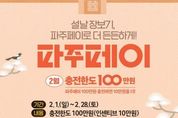 이런뉴스(e-runnews) 김삼성 기자 | 파주시는 다가오는 설 명절을 맞아 추가 충전금 혜택을 받을 수 있는 충전 한도를 기존 70만 원에서 100만 원으로 상향한다. 2월 한 달간 100만 원을 충전할 경우, 연중 상시 지급되는 10% 인센티브가 적용돼 추가 충전금 10만 원이 더해진 총 110만 원을 사용할 수 있다. 이를 통해 명절을 앞두고 소비 지출이 늘어나는 시민의 경제적 부담을 덜고, 지속적인 경기 침체로 어려움을 겪고 있는 관내 소상공인의 매출이 증대될 것으로 기대된다. 파주시 관계자는 “이번 파주페이 확대 발행이 설 명절 장바구니 물가 부담을 완화하고, 지역 골목상권에 활력을 불어넣는 마중물이 되길 바란다”라며, “시민 여러분의 많은 관심과 이용을 부탁드린다”라고 전했다. 한편, 파주페이는 ‘경기지역화폐’앱 및 관내 농협을 통해 충전이 가능하며, 현재 음식점, 학원, 전통시장 등 1만 6천여 개의 가맹점에서 사용할 수 있다. 파주시는 시민 편의 증진과 지역경제 활성화를 위해 지난해 가맹점 연매출 제한 기준을 12억 원에서 30억 원으로 대폭 완화해 사용처를 확대한 바 있으며, 어려운 재정 여건