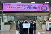 이런뉴스(e-runnews) 김삼성 기자 | 수원 영통중학교 창업동아리 학생들이 창업 활동 수익금을 모아 수원시 취약계층 시민을 위해 기부했다. 1월 29일 수원시청 본관 1층 로비에서 열린 기부금 전달식에는 윤영숙 시민복지국장, 영통중학교 창업동아리 학생 등이 참석했다. 학생들은 직접 디자인·제작한 탁상용 달력 100개를 판매해 마련한 수익금 45만 원을 수원시에 전달했다. 수원시는 기부금을 취약계층 시민 지원을 위해 사용할 예정이다. 영통중학교 창업동아리 학생들은 “작은 나눔이지만 어려운 이웃들에게 도움이 되기를 바라는 마음으로 기부에 참여했다”며 “직접 만든 작품으로 나눔을 실천할 수 있어 기쁘다”고 소감을 밝혔다. 윤영숙 시민복지국장은 “학생들이 활동 수익금으로 이웃사랑을 실천한 모습이 대견하다”며 “따뜻한 나눔이 지역사회 전반으로 확산되기를 바란다”고 말했다.
