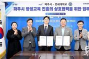 이런뉴스(e-runnews) 김삼성 기자 | 파주시는 지난 11일 연세대학교 미래교육원과 ‘일생일대 프로젝트’의 공동 기획·운영을 위한 평생교육 진흥 업무협약(MOU)을 체결하고, 2026년 사업 확대를 위한 협력 체계를 본격 가동했다. 이번 협약은 파주시의 대표적인 대학 연계 평생학습 사업인 ‘일생일대 프로젝트’를 보다 체계적이고 지속 가능하게 추진하기 위한 협력 기반을 마련하기 위한 것으로, 시민 생활권 내에서 명문 대학의 고품격 교육을 누릴 수 있는 학습 환경 조성을 목표로 한다. ‘일생일대 프로젝트’는 하나의 읍면동 평생학습센터와 하나의 대학을 1대 1로 연계해, 시민들에게 생활권 내 학습 기회를 제공하는 경기도 최초의 파주형 평생학습 모델이다. 연세대학교(미래교육원)은 이번 협약을 통해 대학이 보유한 전문성과 교육 자원을 활용해 파주시민을 위한 특화 교육과정을 설계·운영할 예정이다. 이날 협약식에서 오석영 연세대학교 미래교육원장은 “연세대학교 미래교육원은 지역사회와 함께하는 평생교육을 꾸준히 실천해 왔다”라며 “이번 협약을 통해 파주 시민에게 실질적이고 의미 있는 학습 기회를 제공하고, 대학이 가진 지