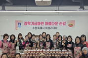 이런뉴스(e-runnews) 김삼성 기자 | 수원시여성리더회가 5일 행궁동 어울림센터 공용주방에서 ‘장학기금 마련 젓갈 포장 행사’를 열었다. 김미애 수원시여성리더회 총회장과 이지영 수원시여성단체협의회 명예회장 등 회원 20여 명이 참여해 명란젓과 낙지젓 등 4종의 젓갈을 소포장해 판매했다. 수익금은 장학금으로 기부할 예정이다. 김미애 총회장은 “장학기금 마련에 동참해 주신 모든 분께 감사드린다”며 “이번 행사가 학생들의 미래를 응원하는, 작은 힘이 되길 바란다”고 말했다. ‘수원시 여성지도자대학’ 수료생으로 구성된 수원시여성리더회는 2004년 출범 이후 한부모가정 지원, 저소득 중·고등학생 장학금 후원, 복지관 중식 봉사, 소외계층 김장 봉사, 헌혈 캠페인 등 지역사회를 위한 나눔·봉사 활동을 꾸준히 하고 있다.