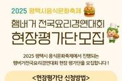 이런뉴스(e-runnews) 김삼성 기자 | 평택시는 오는 25일 농업생태원에서 ‘2025 평택시 음식문화축제’를 통해 ▲전국 요리경연대회 ▲평택 지역 맛집 및 세계음식 시식·체험관 ▲노 오븐 베이킹 체험관 ▲탄소중립 실천·홍보관 등 다채로운 부스가 운영돼 시민들에게 풍성한 경험을 선사할 예정이다. 전국 요리경연대회는 ‘평택의 맛, 나만의 아이디어로 버거를 완성하다’를 주제로 총 18팀(일반부 10, 가족부 8)이 본선에 진출해 열띤 경연을 펼친다. 지난해와 달리 참가 부문이 일반부와 가족부로 확대됐으며, 시상 규모도 10팀 740만 원으로 늘어나 큰 기대를 모으고 있다. 경연대회의 생생한 현장을 함께할 시민 현장평가단도 사전 모집한다. 10월 24일(금) 오전 9시부터 오후 5시까지 일반부와 가족부 각 20명씩 무작위로 선착순 접수받으며, 편식 없는 고등학생 이상이라면 누구나 신청할 수 있고, 선정된 지원자는 실제 경연 현장에서 요리를 맛보고 평가하게 된다. 또한, 오전 10시에는 빵과당신 인재홍(대한민국 제과명장)이 진행하는 베이킹 체험이 마련돼 있으며, 참가 신청은 24일(금) 오전 10시부터 평택예총 공