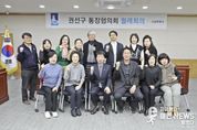 이런뉴스(e-runnews) 김삼성 기자 | 수원시 권선구는 지난 4일, 권선구청 상황실에서 각 동 통장협의회 회장들이 참석한 가운데 2월 정기 월례회의를 개최했다. 이날 회의에서는 2026년 수원시 시민안전보험, 취업준비청년 면접정장 대여사업 '청나래'와 같은 수원시의 주요 사업 안내가 이루어졌으며, 설 명절을 맞아 통장의 역할을 되새기는 시간을 가졌다. 양배근 권선구 통장협의회장은 “설 명절을 맞아 통장으로서 지역의 취약계층 등을 위해 노력하고자 한다”며, “소외된 주민들에게 먼저 손을 내밀어 지역의 발전과 화합을 위해 통장협의회가 앞장서겠다”라고 말했다. 고호 권선구청장은 “명절을 앞두고 통장님들께서 마을 구석구석을 세심하게 살펴주시길 부탁드린다”며, “앞으로도 민관이 긴밀히 소통하고 협력하여 더욱 살기 좋은 권선구를 만들어 나가는 데 최선을 다하겠다”라고 말했다.