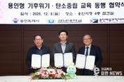 이런뉴스(e-runnews) 김삼성 기자 | 용인특례시는 8일 시청 접견실에서 강남대학교, 용인예술과학대학교와 ‘용인형 기후위기·탄소중립 교육 동행 협약’을 체결했다. 이날 협약식은 기후위기에 공동으로 대응하고, 지속가능한 지역사회 발전과 미래 세대 양성을 위해 마련됐다. 협약의 주요 내용은 ▲탄소중립‧기후 위기 대응 교육프로그램 공동 개발‧운영 ▲교육봉사‧멘토링 등 교원‧전문가‧학생 간 교류와 연계 활동 지원 ▲지역사회 대상 탄소중립 홍보‧캠페인‧체험 교육 공동 추진 ▲교육시설‧인프라 상호 활용 등이다. 협약에 따라 시와 두 대학은 탄소중립 사회 실현을 위한 교육 모델을 구축한다는 방침이다. 각 대학의 유아교육과 인력과 연계해 교육봉사 기회를 확대하고, 신규 프로그램을 공동 개발해 용인지역 학생들을 탄소중립 실천 의지를 가진 인재로 육성하고, 시민의 환경 감수성을 높이는 데도 이바지하겠다는 계획이다. 이에 따라 오는 12일 용인예술과학대 유아교육과 연극동아리가 기후변화체험교육센터에서 아동 30명을 대상으로 관련 연극을 진행한다. 이상일 시장은 “기후 위기는 글로벌 차원의 가장 중대한 문제인 만큼 기후 위기에 대응하기 위해 중앙‧지방정부, 대학, 각 기관 등
