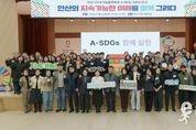 이런뉴스(e-runnews) 김삼성 기자 | 안산시는 지난 27일 시민과 함께 지속 가능한 미래로 나아가자는 의미를 담은 ‘안산시 지속가능발전 비전 선포식’을 개최했다고 28일 밝혔다. 이번 행사는 환경·경제·사회·거버넌스 전 분야를 아우르는 안산형 지속가능발전 체계(A-SDGs)를 공식 선포하고, 지속 가능한 도시로 나아가기 위한 공동의 실천 의지를 다지기 위해 마련됐다. 안산시 지속가능발전협의회가 주최한 이번 행사에는 이민근 시장을 비롯해 지속가능발전협의회 대표회장, 관련기관·단체 관계자 등이 참석했다. 참석자들은 비전 선언문 낭독과 퍼포먼스를 통해 안산형 지속가능발전 비전에 공감하며 실천 의지를 다졌다. 특히 이번 비전 선포식은 안산시와 시민, 관계기관이 함께 참여해 시민의 삶과 직결된 환경 개선과 사회적 가치 실현을 논의하고, 안산시 도시 특성을 반영한 중·장기 발전 방향을 공유하는 기회라는 점에서 의미가 깊다. 이민근 안산시장은 “지속가능발전은 행정의 노력만으로는 완성될 수 없으며, 시민과 지역사회가 함께할 때 비로소 실현가능한 과제”라고 강조했다. 이 시장은 이어 “선포된 비