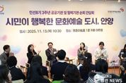 이런뉴스(e-runnews) 김삼성 기자 | 안양시는 13일 오전 10시 30분 평촌아트홀 1층 카페 아트림에서 ‘시민이 행복한 문화예술 도시, 안양’을 주제로 (재)안양문화예술재단과 민선 8기 3주년 공공·협력기관 순회 간담회를 개최했다. 이번 간담회는 민선8기 3주년을 맞아 안양시 문화예술 정책의 주요 성과를 공유하고, 현장 예술인과 시민의 의견을 직접 청취하기 위해 마련됐다. 행사에는 안양 지역 예술인과 문화단체 관계자, 시민 등 120여 명이 참석해 안양의 문화예술 비전과 발전 방향에 대해 활발한 소통의 시간을 가졌다. 간담회에서는 ▲시민이 주인공이 되는 ‘안양춤축제’ ▲생활문화로 피어나는 ‘마을축제 지원사업’ ▲지역·청년예술인 창작활동 지원 ▲안양박물관과 공공예술프로젝트(APAP) 등 시민이 함께 만들어가는 다양한 문화예술 사례가 소개됐다. 안양춤축제는 안양만의 축제가 아니라 관광형 축제로 거듭나고 있다. 지난 9월 3일간 열린 축제에는 총 14만2,000여명이 참여했는데, 이 중 40%가 타 시도민으로 추산된다. 춤축제 기간 열린 유스클럽챔피언십의 한 고등학생 참가자는 “대회 분위기가 생각보다 훨씬