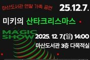 이런뉴스(e-runnews) 김삼성 기자 | 김포시 마산도서관은 다가오는 크리스마스를 기념하여, 가족 단위로 관람할 수 있는 마술 공연 프로그램 ‘미키의 산타크리스마스’를 진행한다. ‘미키의 산타크리스마스’는 시선을 사로잡는 다양한 마술과 퍼포먼스를 통해, 관객에게 설렘과 행복, 즐거움과 감동을 선사하는 관객 소통형 공연이다. 또한 공중부양 포토존을 도서관 내에 설치해 특별한 추억을 만들 수 있도록 했다. 이번 프로그램은 김포시민 100명을 대상으로 12월 7일 일요일 14시부터 마산도서관 3층 다목적실에서 한 시간가량 진행된다. 11월 14일 금요일 오전 10시부터 김포시 마산도서관 홈페이지 ‘문화행사 신청(모집/행사 부분)’ 코너에서 온라인으로 신청할 수 있다.