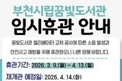 이런뉴스(e-runnews) 김삼성 기자 | 부천시립꿈빛도서관은 노후 엘리베이터 전면 교체 공사를 위해 3월 9일부터 4월 13일까지 임시휴관한다. 공사 과정에서 분진과 소음 발생이 불가피한 만큼 이용자 안전을 확보하고 시민 불편을 최소화하기 위해 전면 휴관 후 공사를 진행한다. 시는 휴관에 따른 이용자 불편을 최소화하기 위해 대체 서비스를 운영해 도서 이용 공백을 줄일 계획이다. 이에 따라 상호대차 및 예약도서대출 서비스는 3월 16일부터 4월 13일까지 평일 오전 9시부터 오후 6시까지 운영하며, 무인예약대출 서비스와 무인 반납함은 휴관 기간에도 정상 운영한다. 도서관 이용을 원하는 시민은 상동도서관, 책마루도서관, 상동역·신중동역 칙칙폭폭 작은도서관, 숲속작은도서관을 이용하면 된다. 부천시 꿈빛도서관 관계자는 “이번 엘리베이터 교체 공사는 시민 안전을 최우선으로 고려한 시설 개선 사업”이라며 “공사 기간 다소 불편이 있더라도 양해를 부탁드리며, 보다 안전하고 쾌적한 환경에서 도서관을 이용할 수 있도록 정비에 최선을 다하겠다”고 말했다. 부천시립꿈빛도서관은 공사를 차질 없이 마무리해 4월 14일