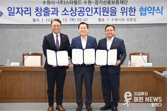 이런뉴스(e-runnews) 김삼성 기자 | 수원시가 ㈜스타필드 수원, 경기신용보증재단과 협력해 일자리를 창출하고 소상공인을 지원한다.