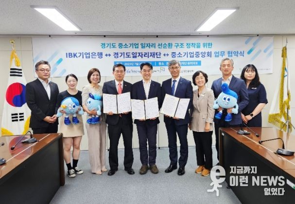 이런뉴스(e-runnews) 김삼성 기자 | 경기도일자리재단이 IBK기업은행, 중소기업중앙회와 도내 중소기업의 괜찮은 일자리 창출과 확산 및 우수인재 영입에 뜻을 함께 하기로했다.