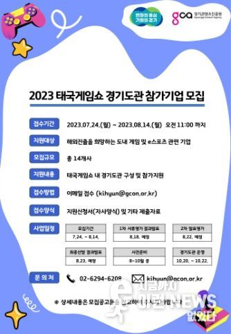 이런뉴스(e-runnews) 김삼성 기자 | 경기도가 ‘2023년 태국게임쇼’ 경기도관 참여기업을 다음 달 14일까지 모집한다.