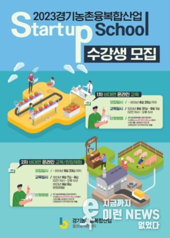 이런뉴스(e-runnews) 김삼성 기자 | 경기농촌융복합산업지원센터가 8월 23일까지 농촌융복합산업분야를 위한 온라인 교육 ‘스타트업 스쿨’ 수강생을 모집한다.