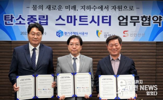 GH가 23일 본사에서 광명시, 넥스트레인(주)가 탄소중립 스마트시티 업무협약(MOU)를 맺었다.