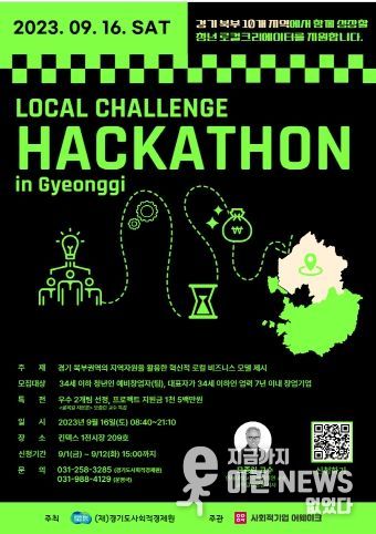 이런뉴스(e-runnews) 김삼성 기자 | 경기도사회적경제원은 경기 북부권역(가평, 고양, 구리, 남양주, 동두천, 연천, 양주, 의정부, 파주, 포천)의 지역자원을 활용한 혁신적 로컬비즈니스모델 발굴을 위한 ‘2023년 로컬챌린지 해커톤(제한 시간 내 주제에 맞는 서비스 개발)’에 참여할 청년을 오는 12일까지 모집한다.