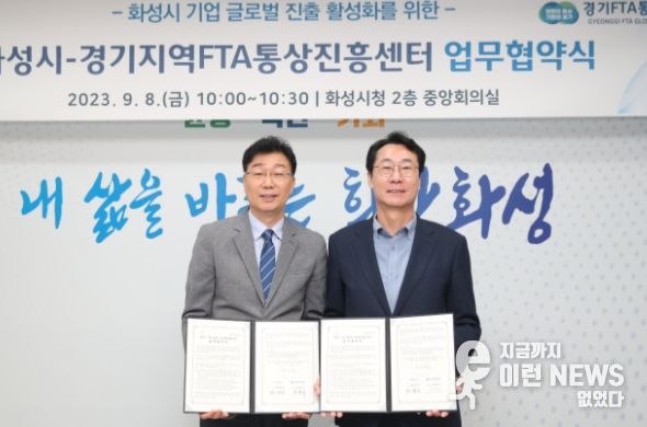 이런뉴스(e-runnews) 김삼성 기자 | 화성시가 8일 경기FTA(자유무역협정)통상진흥센터와 ‘화성시 기업 글로벌 진출 활성화를 위한 업무협약(MOU)’을 체결했다.