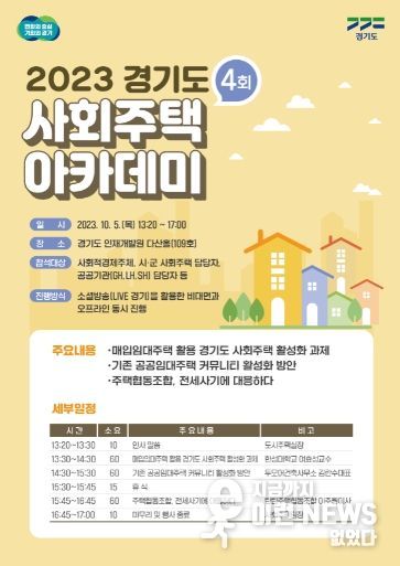 이런뉴스(e-runnews) 김삼성 기자 | 경기도는 5일 경기도인재개발원에서 경기도 테마형 임대주택 공급 방안 등 사회주택 활성화를 위한 ‘제4회 경기도 사회주택 아카데미’를 개최했다.