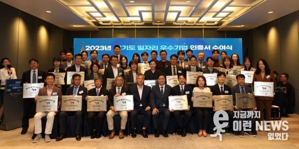 이런뉴스(e-runnews) 김삼성 기자 | 경기도는 26일 라마다플라자 수원호텔 오키드홀에서 염태영 경기도 경제부지사, 손일권 경기도일자리재단 서부사업본부장, 일자리 우수기업 인증기업 대표 등 관계자 80여 명이 참석한 가운데 ‘2023년 경기도 일자리 우수기업 인증서 수여식’을 열고 60개 우수기업에 인증서를 수여했다.