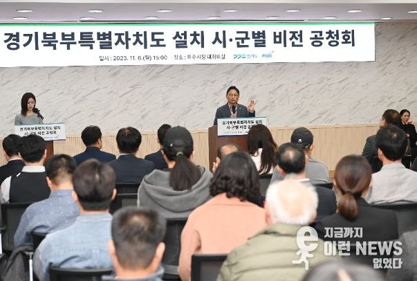 경기도는 6일 파주시청 대회의실에서 김경일 파주시장, 박정 국회의원, 오후석 경기도 행정2부지사 등을 비롯한 지역주민 등 100여 명이 함께한 가운데 ‘경기북부특별자치도 설치 추진 시군별 비전 공청회’를 열었다.