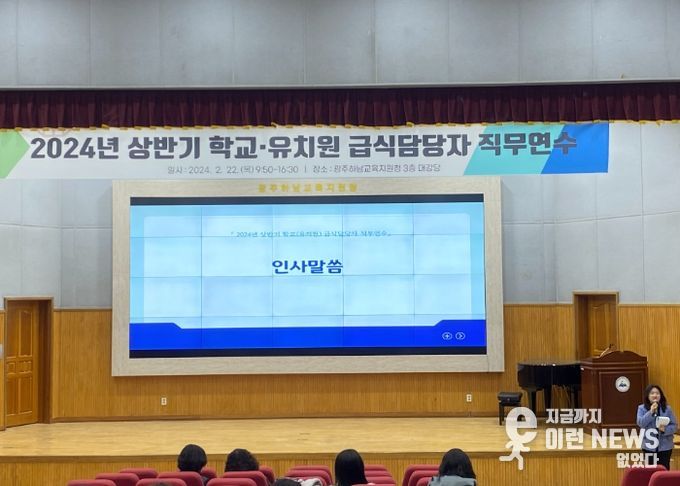 이런뉴스(e-runnews) 김삼성 기자 | 경기도광주하남교육지원청은 22일 관내 유·초·중·고·특수 급식담당자 125명을 대상으로 ‘2024년 학교·유치원 급식담당자 직무연수’를 실시했다.