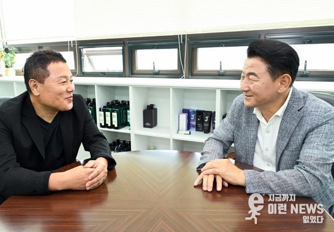 김동근 시장은 기업 대표를 만나 브랜딩 등 기업운영에 관한 이야기를 나누고, 지역경제 활성화와 일자리 창출에 큰 역할을 하는 제이숲에 감사와 격려의 뜻을 전했다.