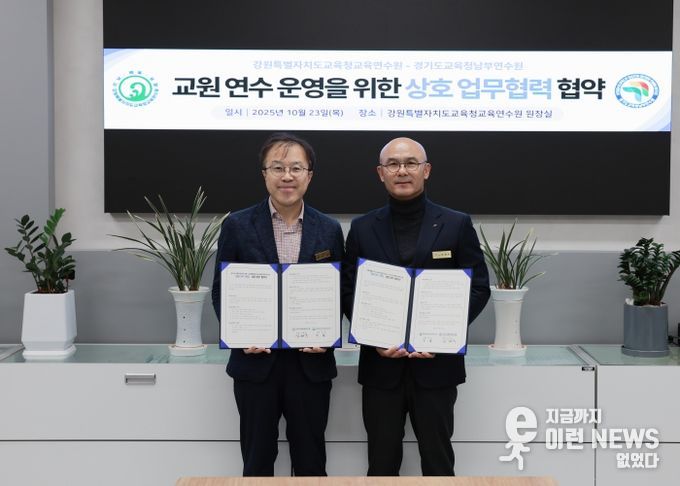 이런뉴스(e-runnews) 김삼성 기자 | 경기도교육청남부연수원이 23일 강원특별자치도교육청교육연수원과 교원 연수 협력을 위한 업무협약(MOU)을 체결했다.