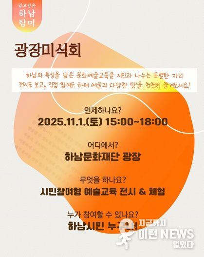 이런뉴스(e-runnews) 김삼성 기자 | 화예술회관 야외 행사장에서 지역중심 문화예술교육 ‘하남 탐미’ 광장 부스 행사를 개최한다.