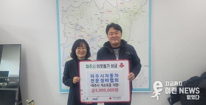 이런뉴스(e-runnews) 김삼성 기자 | 파주시는 지난 22일, 파주시자동차전문정비협회가 파주시청을 방문하여 관내 취약계층을 위해 써달라며 현금 5백만 원을 기탁했다고 밝혔다.
