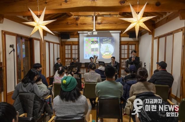 한옥숙박체험관 마당과 한옥11동에서는 캐럴 등 공연이 열려 겨울의 추위를 따뜻하게 채웠다. 20일에는 지역에서 활동하는 ‘모담어린이국악합창단’, 지역 내 아마추어 합주단 ‘포디움 윈드오케스트라’, 전문공연단체‘The울림’의 앙상블 무대가 열렸고, 21일에는 보듬우리협동조합의 클라리넷 독주가 열려 발달장애인과 비장애인이 음악으로 하나 되며 연말의 감동을 전했다.