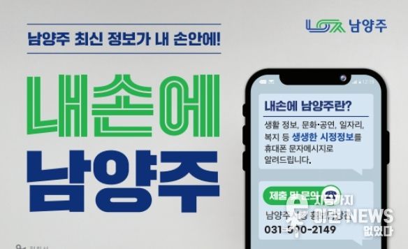 ‘내손에 남양주’는 주요 시정 정책과 행사, 생활 밀착형 정보 등을 문자메시지로 제공하는 서비스로, 별도의 앱 설치나 로그인 없이 누구나 간편하게 이용할 수 있다.