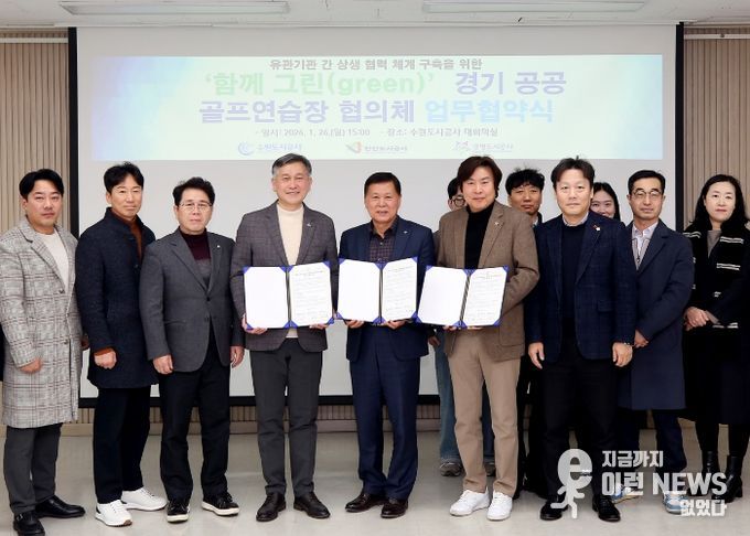 26일 공사에 따르면 공사는 이날 오후 더함파크 대회의실에서 광명도시공사, 안산도시공사 등과 ‘함께 그린(green) 경기공공골프연습장 협의체 업무협약식’을 가졌다.