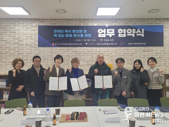 이런뉴스(e-runnews) 김삼성 기자 | 파주시 한울도서관은 지난 26일 장애 특화 서비스 확대를 위해 관내 주요 유관 기관 및 단체와 업무협약식을 개최했다.