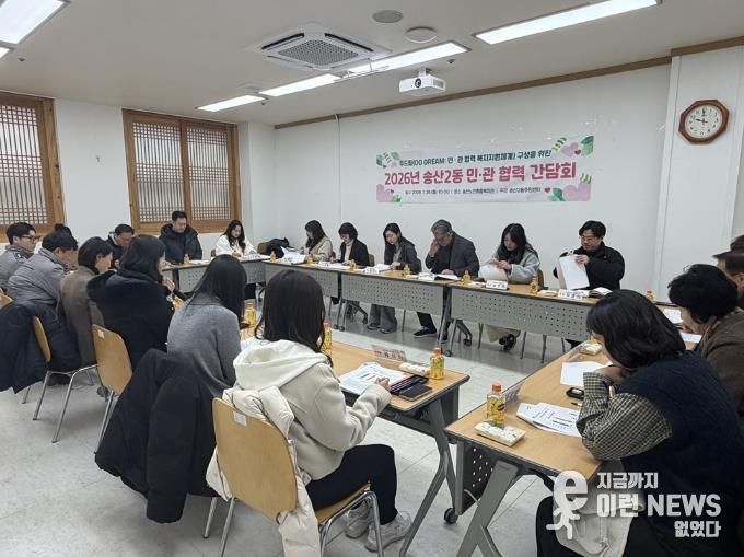 이런뉴스(e-runnews) 김삼성 기자 | 의정부시 송산2동주민센터는 1월 26일 송산노인종합복지관 1층 배움터실에서 ‘두드림(DO DREAM) 민관 협력 간담회’를 열고, 동 단위 복지지원체계 강화를 위한 협력 기반을 다졌다.