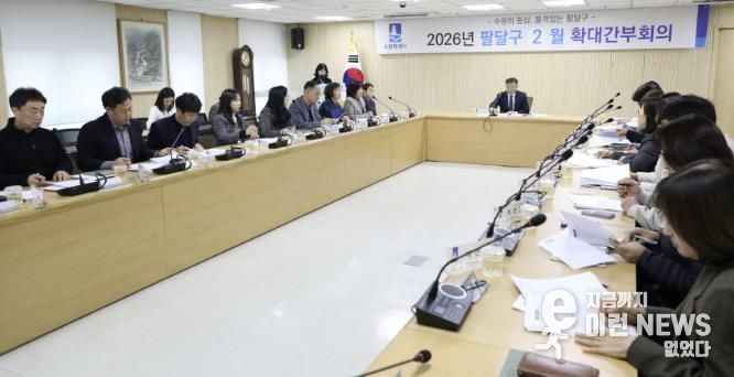 이런뉴스(e-runnews) 김삼성 기자 | 수원시 팔달구는 지난 26일 확대간부회의를 개최하여, 겨울철·해빙기 안전사고 대응 방안을 점검하고 명절 대비 종합대책 수립 등 주요 사업 추진 상황을 공유했다.