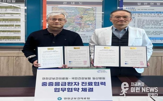 이런뉴스(e-runnews) 김삼성 기자 | 연천군보건의료원은 지난 23일 국민건강보험 일산병원과 중증응급환자의 신속한 이송과 진료협력을 위한 업무협약을 맺었다.