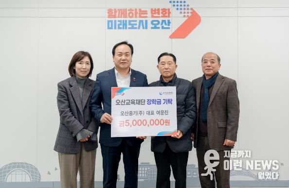 이권재 오산시장은 “지역사회를 위해 꾸준히 나눔을 실천해 주고 계신 여운진 대표님께 진심으로 감사드린다”며 “기탁해 주신 장학금은 오산 학생들이 꿈과 재능을 마음껏 펼칠 수 있도록 소중히 활용하겠다”고 밝혔다.
