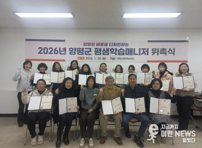 이런뉴스(e-runnews) 김삼성 기자 | 양평군은 26일 평생학습센터에서 ‘2026년 양평군 평생학습매니저 위촉식’을 성황리에 개최했다.