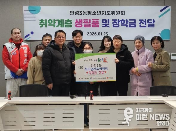 이문주 안성3동 청소년지도위원회 위원장은 “청소년들이 가정환경이나 경제적 여건에 제약받지 않고 꿈과 미래를 준비할 수 있도록 돕는 것이 이번 사업의 취지”라며 “앞으로도 지역사회와 긴밀히 협력해 청소년들이 건강하고 안전하게 성장할 수 있는 기반을 마련하겠다”고 말했다.